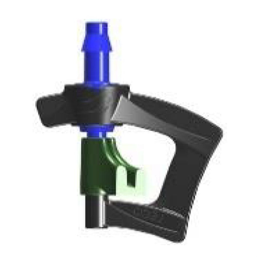 Mikropostřikovač s pevnou C-rámovou konstrukcí, která umožňuje excelentní rovnoměrnost distribuce vody. Barevné rozlišení dle průtoku. Ideální pro použití do skleníků.